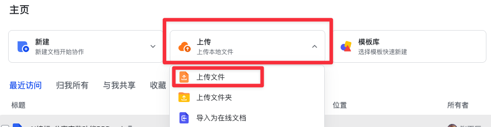 2、打开飞书,点击“导入文档”,导入生成的md文件。