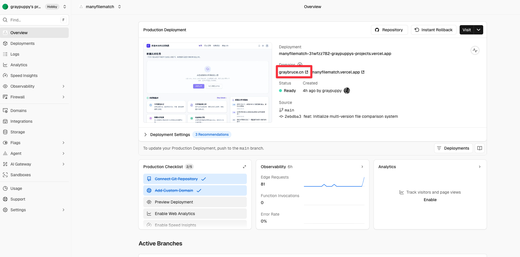 6、再回到项目页面会发现,自己的域名已经能访问了,且可以不用翻墙访问。