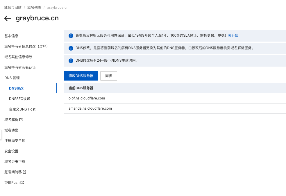 三、采用cloudflare申请免费ssl和cdn转发(如果不要求国内访问可以不看这个章节)