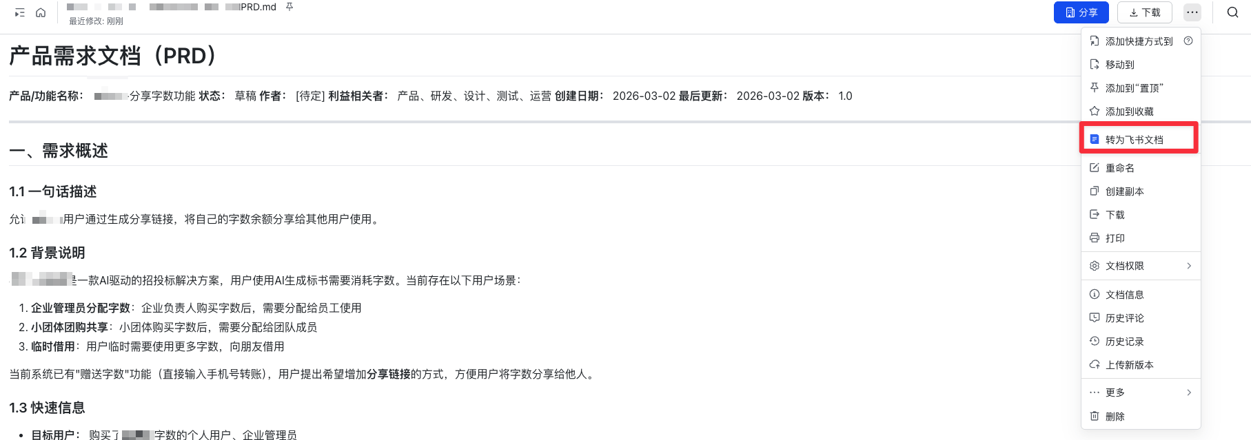 转换完成后就得到了可编辑可进行优化的飞书文档,参考: