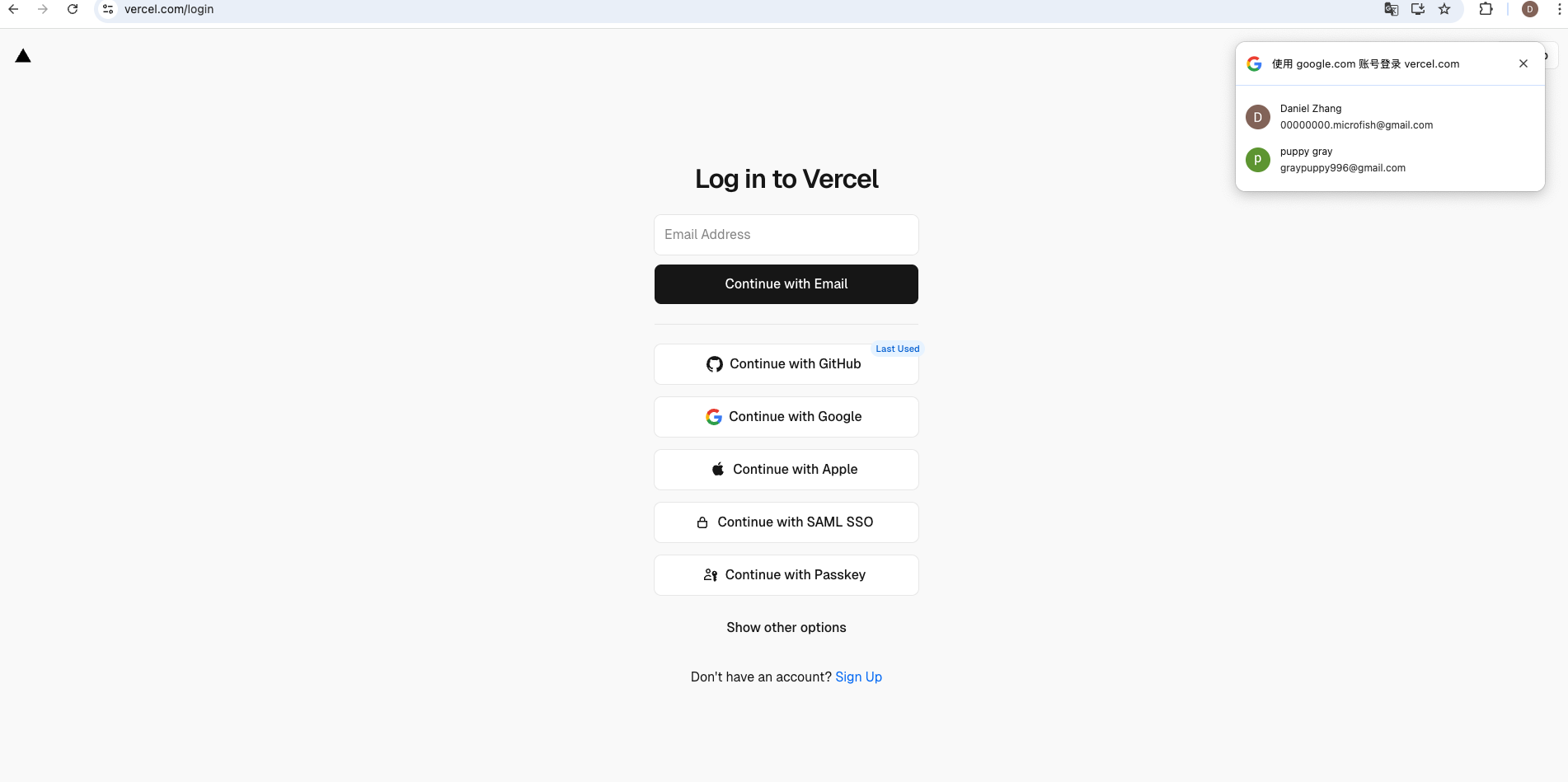 1、进入网站(https://vercel.com/)登录。这边建议直接采用github登录,因为后面需要直接从github拉项目。