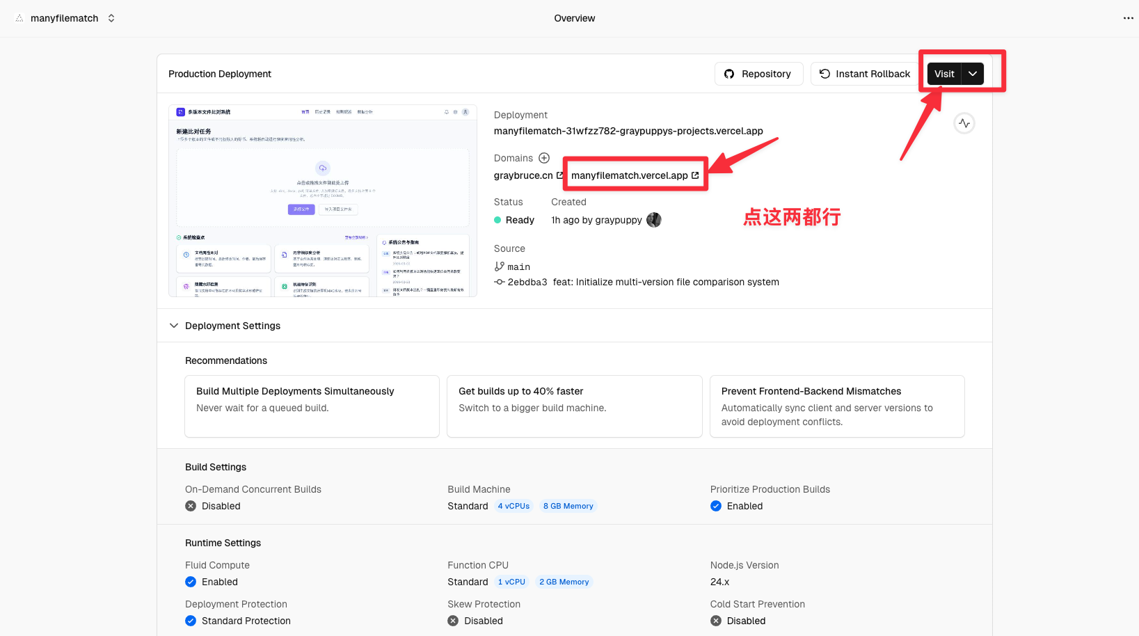 6、再回到项目页面会发现,自己的域名已经能访问了,且可以不用翻墙访问。