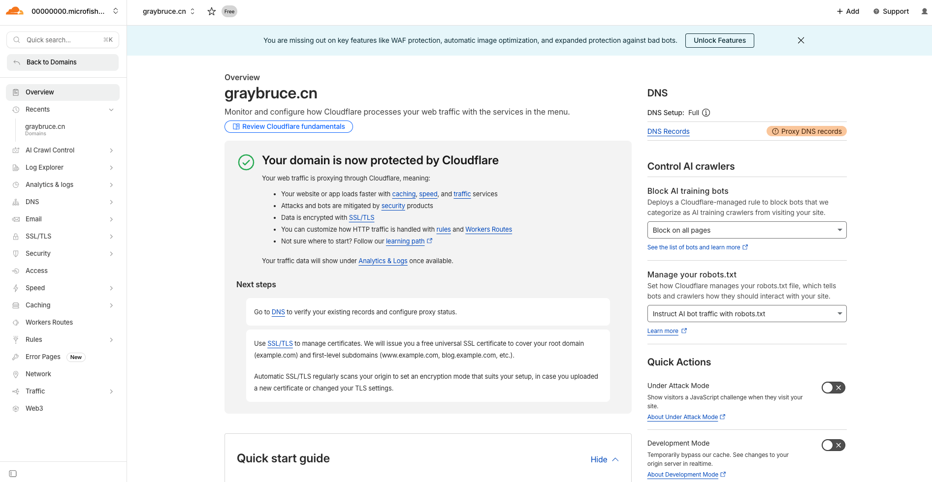 三、采用cloudflare申请免费ssl和cdn转发(如果不要求国内访问可以不看这个章节)